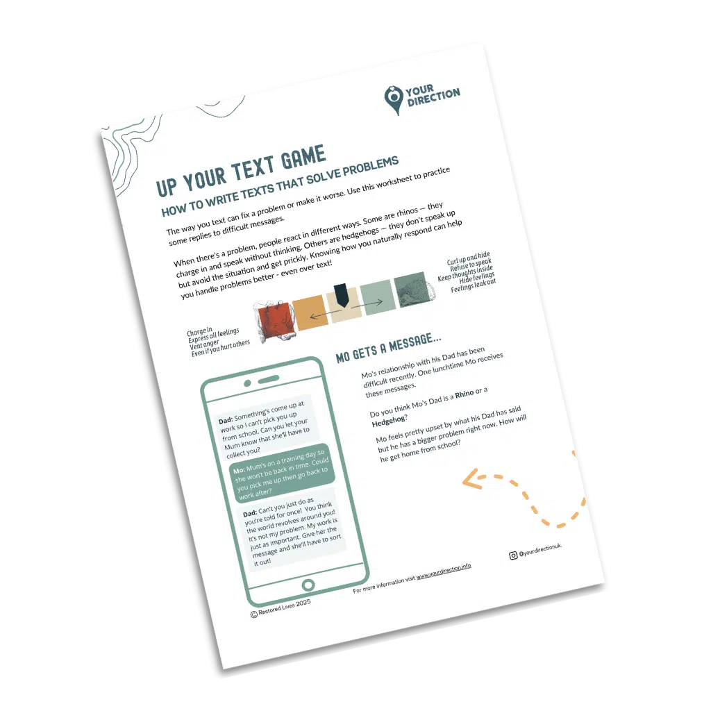 The way you text can fix a problem or make it worse. Use this worksheet to practice some replies to difficult messages.
